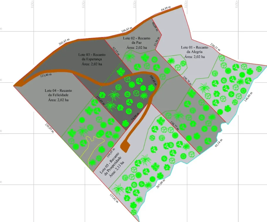 Com 2,13 hectares (21.300 m²), o Recanto da Prosperidade é o maior sítio do residencial, oferecendo amplitude para grandes projetos e cultivo. Com área destinada à preservação ambiental e espaço edificável planejado, é perfeito para quem deseja unir natureza, investimento e liberdade em um só lugar.